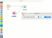 When you want to use a custom-set model that you’ve saved before, open the Load Model widget and select the desired file with the Browse icon. This widget loads the existing model into Predictions widget. Datasets used with Load Model have to contain compatible attributes! | When you want to use a custom-set model that you’ve saved before, open the Load Model widget and select the desired file with the Browse icon. This widget loads the existing model into Predictions widget. Datasets used with Load Model have to contain compatible attributes! | ||