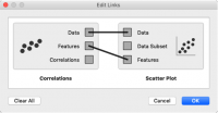 Data: input dataset Features: selected pair of features Correlations: data table with correlation scores
