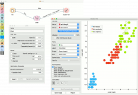 In the first (regression) example, we have used housing dataset and split the data into two data subsets (Data Sample and Remaining Data) with Data Sampler. The sample was sent to SVM which produced a Model, which was then used in Predictions to predict the values in Remaining Data. A similar schema can be used if the data is already in two separate files; in this case, two File widgets would be used instead of the File - Data Sampler combination.