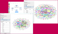 Word Cloud menampilkan token di corpus, besar font menunjukkan frekuensi kata dalam corpus atau rata-rata jumlah Kata, ketika fitur bag of words berada di input widget. Kata-kata terdaftar berdasarkan seringnya muncul (weight) dalam widget. Widget mengeluarkan dokumen, berisi token yang dipilih dari word cloud.