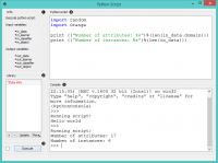 • Pressing Execute in the Run box executes the script (keyboard shortcut “Ctrl+R”). Any script output (from print) is captured and displayed in the Console below the script.