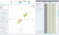 • Select, zoom, pan and zoom to fit are the options for exploring the graph. Manual selection of data instances works as an angular/square selection tool. Double click to move the projection. Scroll in or out for zoom.