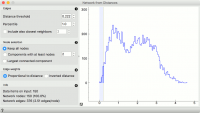 Network dari Distance membangun sebuah network graph dari sebuah distance matrix yang diberikan. Graph dibangun dengan connecting node dari matrix dimana distance antar node dibawah dari threshold yang diberikan. Dengan kata lain, semua instance dengan distance di bawah threshold yang di tentukan, akan tersambung /connected.
