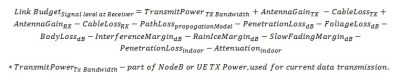Perhitungan didasarkan pada standar 3GPP 38.901. Perkiraan Link budget 5G NR dapat dihitung menggunakan rumus:
