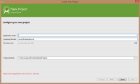 Kita dapat memulai pengembangan aplikasi dengan calling start a new android studio project. dalam new installation frame akan di tanyan nama Aplikasi, informasi paket, dan lokasi proyek.−