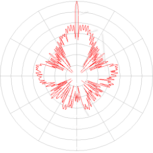 Kepentingan representasi ini terletak pada akuisisi sederhana dari directivity antena. Biasanya, nilai -3 dB juga diberikan pada skala sebagai lingkaran putus-putus. Titik persilangan antara main lobe dan lingkaran ini menghasilkan apa yang disebut half power beam width antena. Parameter lain yang mudah dibaca adalah forward/backward ratio, yaitu rasio antara main lobe dan back lobe, serta ukuran dan arah sidelobe.