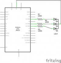 This sketch uses the Serial.parseInt() function to locate values separated by a non-alphanumeric character. Often people use a comma to indicate different pieces of information (this format is commonly referred to as comma-separated-values or CSV), but other characters like a space or a period will work too. The values are parsed into integers and used to determine the color of a RGB LED. You'll use the Arduino Software (IDE) serial monitor to send strings like "5,220,70" to the board to change the light color.