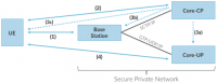 - Pertama, saluran kontrol aman antara UE dan Core-CP yang diatur selama Langkah 2 tetap tersedia, dan digunakan oleh Core-CP untuk mengirim instruksi kontrol tambahan ke UE selama sesi berlangsung.