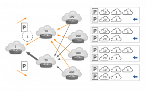 BGP, on the other hand, would immediately see that the path from B through C towards A leads back to B because B’s AS number is present in the AS path. As a result, B ignores this update and never tries to use paths with loops in them. (However, BGP will still try to use longer and longer legitimate, non-looped paths, a situation called path hunting.)