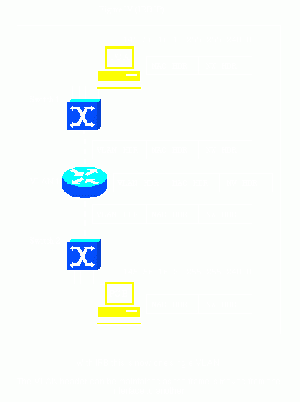 Catatan: Router (bridge) sekarang meneruskan header layer MAC ke interface outward. Router masih mengakhiri header VLAN dan menerapkan header baru sebelum mengirim frame ke PC B.