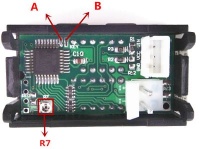 The current display can also be adjusted through the trim pot R7. Simply apply a known current across the meter of approximately 25A (mid-way between the maximum value). Adjust R7 until the meter displays the correct current reading. Digital Panel Meter - Voltage and Current - Calibration and Zero Adjustment