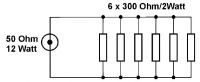 Memparalelkan beberapa resistor, selain untuk mendapatkan daya besar, dimaksud pula memperkecil induktansi liar dari resistor-resistor tersebut. Sebagai contoh dapat dipakai resistor karbon 300 Ohm / 2 Watt sebayak 6 biji yang dibubungkan secara paralel, untuk mendapatkan Dummy Load dengan daya 12 Watt dan impedansi 50 Ohm.