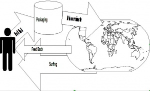 Pada gambar digambarkan siklus pemurnian pengetahuan secara sederhana. Seseorang dalam prosesnya menganalisa dan mensintesa pengetahuan dari berbagai masukan yang dia peroleh kemudian di lemparkan kepada sebuah sistem yang akan mendistribusikan pengetahuan tersebut kepada khalayak ramai. Sistem pendistribusian ini dapat berupa penerbitan buku, artikel di jurnal, majalah, koran, perpusatakaan digital, CD-ROM dll. Umpan balik berupa kritik, saran maupun reward akan diperoleh baik dari lembaga dewa yang menjadi perantara masyarakat, peer review maupun langsung dari masyarakat. Berbasis kepada umpan balik yang diperoleh, pemurnian pengetahuan kemudian dilakukan dengan menjalani siklus tersebut berkali-kali hingga pengetahuan yang dihasilkan semakin hari semakin baik. Proses siklus menjadi demikian cepat jika dibantu dengan infrastruktur teknologi informasi yang sangat effisien.
