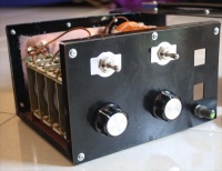 Box saya buat dari bekas regulator tegangan cpu, saya dapat second di pasar cikapundung seharga Rp. 10.000,- kemudian lilitan saya lilit pada pipa penyambung PVC dengan diameter kira-kira 4.5 cm. Lalu kedua varco diputar dengan menggunakan socket volume radio, tanpak pada bagian depan saya siapkan dua buah lobang untuk nantinya ditambahkan rangkaian SWR meter dan Signal meter. Oh yaa, karena pada bekas box regulator tersebut banyak terdapat lubang, maka saya menutupnya dengan PCB polos, hal ini untuk mencegah keluarnya radiasi dari box.