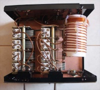 Nilai C1 sebenarnya adalah 200-350pF, karena saya memiliki varco dengan 4 gang dengan total kapasitansi sekitar 1000pf, maka C1 saya ekspand untuk bisa swing dari beberapa puluh pF sampai dengan 1000pF. Sementara itu C2 yang seharusnya hanya 2×200-350pF, saya manfaatkan total keempat gang-nya sehingga masing-masing bisa swing mulai dari beberapa puluh pF sampai dengan 500pF. Sementara lilitan saya tidak terlalu melakukan modifikasi, dan patuh dengan saran OM YB0KO yaitu kata Beliau L1 adalah 14 lilit kawat email 1.6 – 2 mm, dengan spasi pada koker diameter 4,5 cm, sehingga didapati panjang L = 9.5 cm. Tap pada lilitan ke 7 (center tap) dan 10. Sementara, L2 = 4 lilit kawat email 2 mm, dililitkan diatas lilitan terbawah (sisi Grounded atau cold end) dari L1.