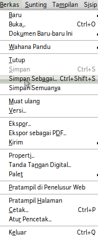 - Klik Menu Berkas pilih simpan atau simpan sebagai atau pada toolbar standar klik tombol Simpan.