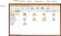 Berikut ini adalah tampilan antar muka dan tombol navigsi dari aplikasi manajer berkas Nautilus.