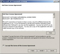 Pertama-tama akan di instalasi framework .NET. Untuk itu kita harus menyatakan persetujuan kita kepada Lisensi yang di ajukan. Klik “I accept the terms of the License Agreement” untuk menyatakan persetujuan kita kepada lisensi yang diberikan.