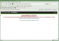 ubah pemilik folder joomla agar dimiliki oleh Web server, juga ubah ijin agar dapat di read, write dan execute melalui perintah