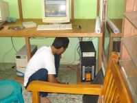 Komputer 1, bekas, bermesin Pentium 4 2GHz (sudah agak soak karena dulunya sering overheat, akhirnya clock diturunkan, sekarang bisa digunakan normal), memory 256MB, harddisk 10GB, OS Freespire 10.3.