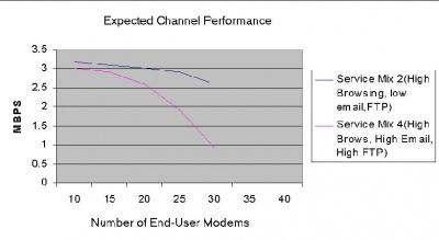 Tampak pada gambar, total maksimum stasiun yang dapat sharing pada sebuah channel yang sama pada dasarnya terbatas & sangat tergantung pada tipe traffic-nya. Pada traffic yang rendah, kita akan melihat sekitar 30-an stasiun sebelum kita melihat drop thruput yang besar. Pada traffic yang besar / tinggi, sebuah channel kemungkinan hanya akan mampu menampung jumlat yang sangat terbatas sekali, sekitar 10-15 stasiun, sebelum kita melihat drop thruput yang sangat besar. Oleh karena itu, kita perlu membatasi jumlah stasiun sekitar 10-30 stasiun saja.