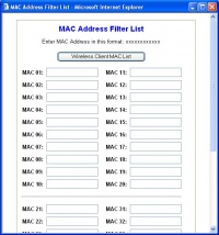 Dalam bagian Advance Setting page, kita dapat mengaktifkan tabel MAC Filtering. MAC Filtering dapat digunakan untuk membatasi akses agar hanya workstation / node yang kita ketahui MAC address-nya saja yang dapat mengakses Access Point.