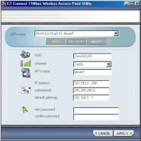 Program utility Access Point bawaan SMC akan secara automatis menscan jaringan dan mencari Access Point SMC di jaringan. Jika Access Point SMC telah di temukan maka akan di tampilkan MAC addesss Access Point dan nama-nya. “default” adalah login password yang di set oleh pabrik yang dapat digunakan untuk memasuki halaman konfigurasi Access Point.
