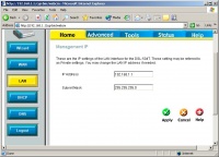 Pada modem / router D-Link DSL504T, IP address dan Subnet Mask dapat di konfigurasi melalui menu Home --> LAN. Nilai IP address default 192.168.1.1 dapat digunakan tanpa perlu diubah.