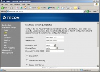 Pada router TECOM AR1031 konfigurasi IP address dan DHCP server dapat dilakukan melalui menu Advanced Setup --> LAN.
