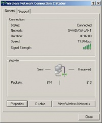 Melalui Wireless Network Connection kita dapat melakukan Site Survey melihat jaringan wireless mana saja yang beroperasi di frekuensi melalui menu View Wireless Networks. Di samping itu, juga dapat menset IP address, netmask dll melalui menu Properties. Praktis hanya dua hal tersebut yang perlu di gunakan untuk menyambungkan diri di jaringan Wireless melalui sistem operasi Windows.
