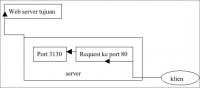 Sebagai contoh, pada saat klient membuka hubungan HTTP (port 80) dengan suatu web server, firewall pada router yang menerima segera mengenali bahwa ada paket data yang berasal dari klien dengan nomor port 80. Disini kita juga mempunyai satu HTTP proxy server yang berjalan pada port 3130. Maka pada firewall router kita buat satu aturan yang menyatakan bahwa setiap paket yang datang dari jaringan lokal menuju ke port 80 harus dibelokkan ke arah alamat HTTP proxy server port 3130. Akibatnya, semua permintaan web dari pengguna akan masuk dan diwakili oleh HTTP proxy server diatas.