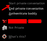 - Setelah, selesai, selanjutnya bisa memulai pembicaraan secara private dengan user lain yang juga menggunakan plugin OTR. Untuk pembicaraan yang private akan ditunjukkan oleh ikon berwarna dan tulisan Private pada toolbar.
