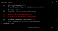 - Jalankan pidgin, lalu tekan Ctrl + U atau pilih Tools -> Plugins. Pada kotak dialog plugins, aktifkan plugin OTR seperti pada gambar berikut ini: