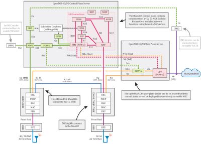 Open5GS berisi serangkaian komponen perangkat lunak dan fungsi jaringan yang mengimplementasikan fungsi inti 4G/5G NSA dan 5G SA.
