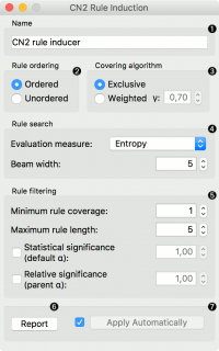 - Name under which the learner appears in other widgets. The default name is CN2 Rule Induction.
