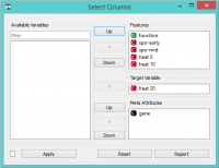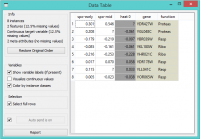 We could also define the domain for this data set in a different way. Say, we could make the data set ready for regression, and use heat 0 as a continuous class variable, keep gene function and name as meta variables, and remove heat 10 and heat 20 from the data set: