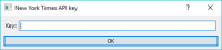 - To begin your query, insert NY Times’ Article Search API key. The key is securely saved in your system keyring service (like Credential Vault, Keychain, KWallet, etc.) and won’t be deleted when clearing widget settings.