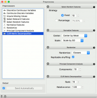 - Similar to Rank, this preprocessor outputs only the most informative features. Score can be determined by information gain, gain ratio, gini index, ReliefF, fast correlation based filter, ANOVA, Chi2, RReliefF, and Univariate Linear Regression.