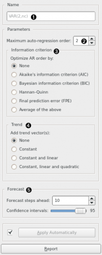 Widget VAR Model dapat me-model-kan time series menggunakan model vector autoregression (VAR).