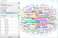 Word Cloud menampilkan token di corpus, besar font menunjukkan frekuensi kata dalam corpus atau rata-rata jumlah Kata, ketika fitur bag of words berada di input widget. Kata-kata terdaftar berdasarkan seringnya muncul (weight) dalam widget. Widget mengeluarkan dokumen, berisi token yang dipilih dari word cloud.