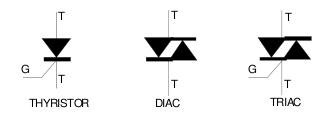 Triac adalah thyristor yang bekerja untuk AC sedangkan diac akan menahan arus kearah dua belah fihak, tetapi setelah tegangan melampaui suatu harga tertentu, ia akan menghantar secara penuh.