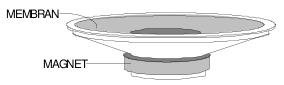 Speaker pada radio digunakan untuk mengubah getaran listrik yang berasal dari detector menjadi getaran suara. Dalam speaker terdapat magnet dan suatu kumparan yang dapat bergerak bebas. Kumparan tersebut dihubungkan dengan suatu membran audio. Bila kumparan dilalui oleh arus AC audio, akan bergerak-gerak dan menggetarkan membran audio.