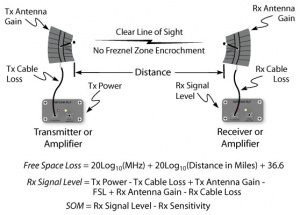 Rx signal level = Tx power - Tx cable loss + Tx antenna gain – FSL