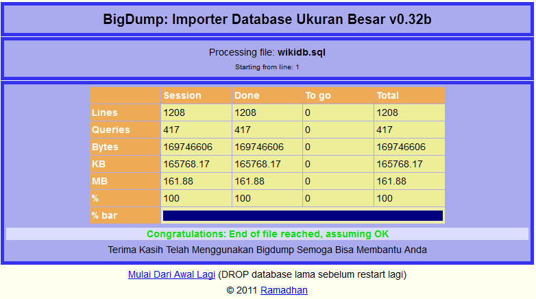 - Download di http://mediawiki-in-windows.googlecode.com/files/bigdump.zip