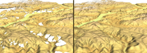 The elevation datasets are affected by mountain and desert no-data areas. These amount to no more than 0.2% of the total area surveyed, but can be a problem in areas of very high relief. They affect all summits over 8,000 meters, most summits over 7,000 meters, many Alpine and similar summits and ridges, and many gorges and canyons. There are some SRTM data sources which have filled these data voids, but some of these have used only interpolation from surrounding data, and may therefore be very inaccurate. If the voids are large, or completely cover summit or ridge areas, no interpolation algorithms will give satisfactory results. Other developers, including NASA World Wind and Google Earth, have improved their results by using 30-arc-second data in the interpolation process, but, due to the poor resolution of these data, and very poor quality of some of them, they have further improved their earth viewing services by adding data from other sources. Readers with Google Earth software can examine an example of the most recent results by clicking on (Mount Everest) and tilting the image.