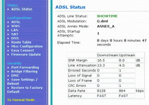 Untuk melihat status koneksi klik menu ADSL Status