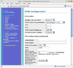 Untuk modem Aztech DSL 305EU, alamat web untuk konfigurasi adalah, http://10.0.0.2 (ingat!!! Lakukan prosedur untuk membebaskan ip address pada komputer anda terlebih dahulu)