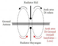Selain hal tersebut diatas, dibandingkan dengan antena horisontal, antena vertikal memiliki masalah berupa ground return loss, ada 2 (dua) macam, yaitu: near field dan far-field ground lossess. Secara sederhana ground return loss bisa dijelaskan sebagai berikut, yaitu arus yang hilang pada ground sistem antena vertikal, arus dari radiator memiliki lintasan berputar, sebagian putaran terjadi pada udara, dan sisanya menembus ground sistem dari antena tersebut, saat melintasi udara tidak banyak arus yang hilang, sementara saat melintasi groung terdapat banyak hambatan sehingga arusnya akan berkurang banyak, lebih jelasnya lihat gambar dibawah.