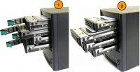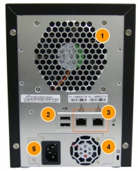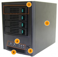 - Bodi (chassis) sebuah NAS. Chassis ini dapat dibuka bagian dalamnya.
