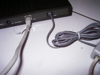 Pertama-tama, sambungkan port ADSL di router ke port modem di splitter. Pada kesempatan ini digunakan router ADSL TP-LINK TD-8800. Splitter yang digunakan disini berwarna putih. Gunakan kabel telepon biasa, semakin pendek kabel yang digunakan makin baik, kita tidak perlu menggunakan kabel panjang untuk keperluan ini.